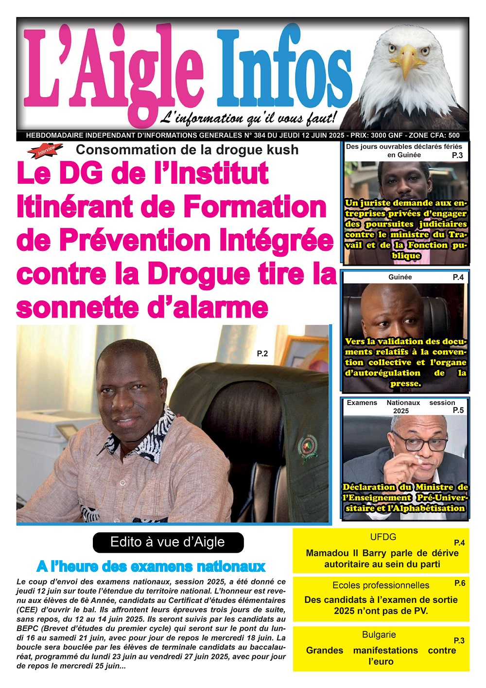 Accueil Dans les kiosques L’AIGLE INFOS N° 384 DU JEUDI 12 JUIN 2025