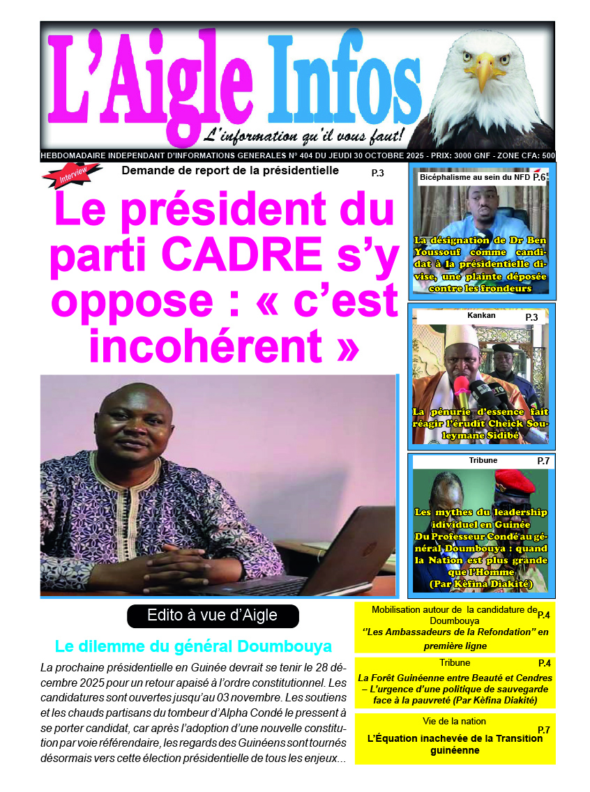Accueil Dans les kiosques L’AIGLE INFOS N° 404 DU JEUDI 30 OCTOBRE 2025