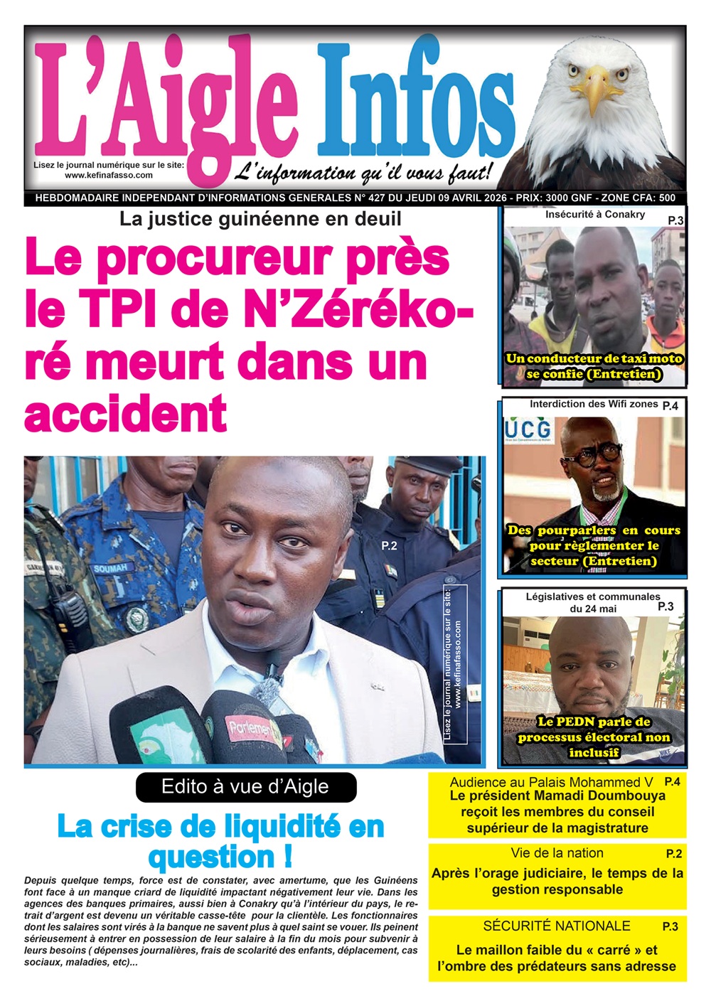Accueil Dans les kiosques L’AIGLE INFOS N° 427 DU JEUDI 09 AVRIL 2026